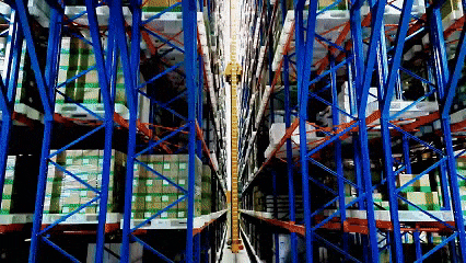 在立庫(kù)巨大的鋼貨架之間,有8條達(dá)60米的狹長(zhǎng)巷道,每條巷道上,都有一位“擎天柱”——堆垛機(jī),它們代替了傳統(tǒng)的人工和高位叉車,在貨架間快速升降穿梭,精準(zhǔn)地從不同儲(chǔ)位取出或放入貨物。地面上,穿梭車(RGV)和自動(dòng)導(dǎo)引車(AGV)來回穿梭,承擔(dān)著物料與成品的運(yùn)輸任務(wù),保障貨物的高效流轉(zhuǎn)。而貨物分揀環(huán)節(jié),則由專業(yè)的機(jī)械手精準(zhǔn)完成。