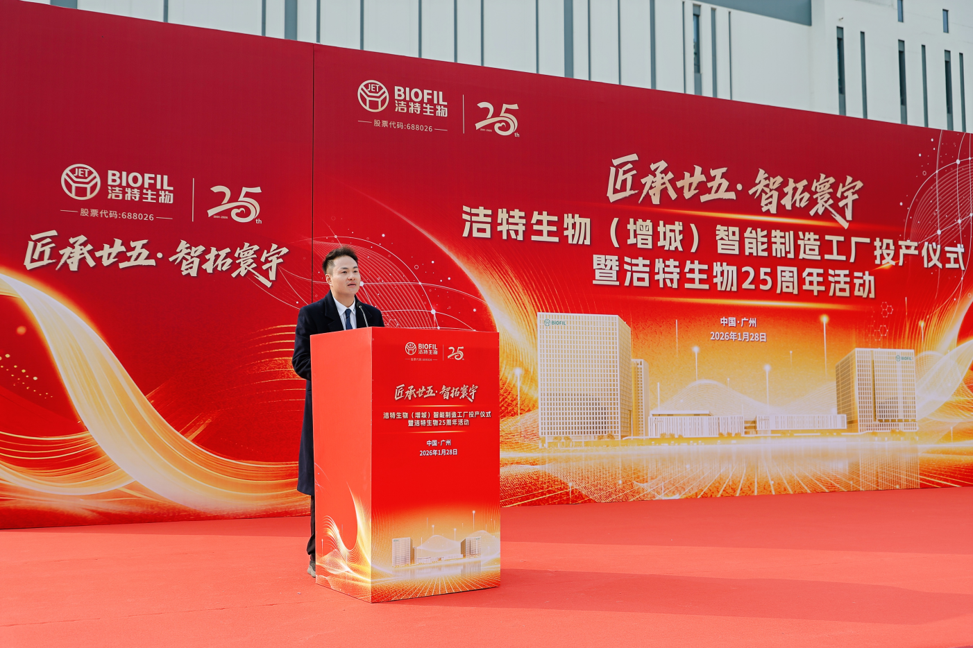 2026年1月28日,以“匠承廿五·智拓寰宇"為主題的潔特生物(增城)智能制造工廠投產(chǎn)儀式暨潔特生物25周年活動(dòng),在廣州增城經(jīng)濟(jì)技術(shù)開發(fā)區(qū)盛大舉行。