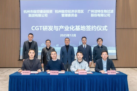 12月4日,廣州潔特生物過濾股份有限公司(以下簡稱“潔特生物”)與杭州臨空經(jīng)濟示范區(qū)在生物科技谷·紅楓園區(qū)舉行項目合作簽約儀式。潔特生物旗下的中賽柏泰生物科技(杭州)有限公司、潔科膜過濾技術(杭州)有限公司正式簽約入駐臨空,標志著雙方在細胞與基因治療(CGT)及生物醫(yī)藥領域的深度合作正式啟航,共同擘畫產(chǎn)業(yè)協(xié)同新藍圖。