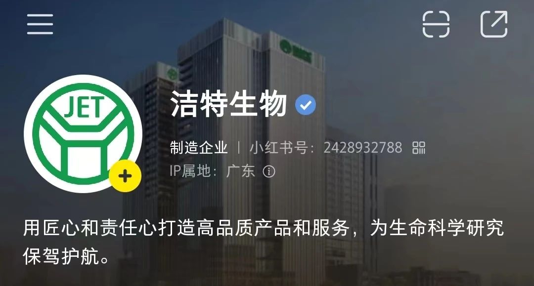 1. 關(guān)注微信公眾號(hào)“潔特生物JET”、小紅書(shū)官方號(hào)“潔特生物”