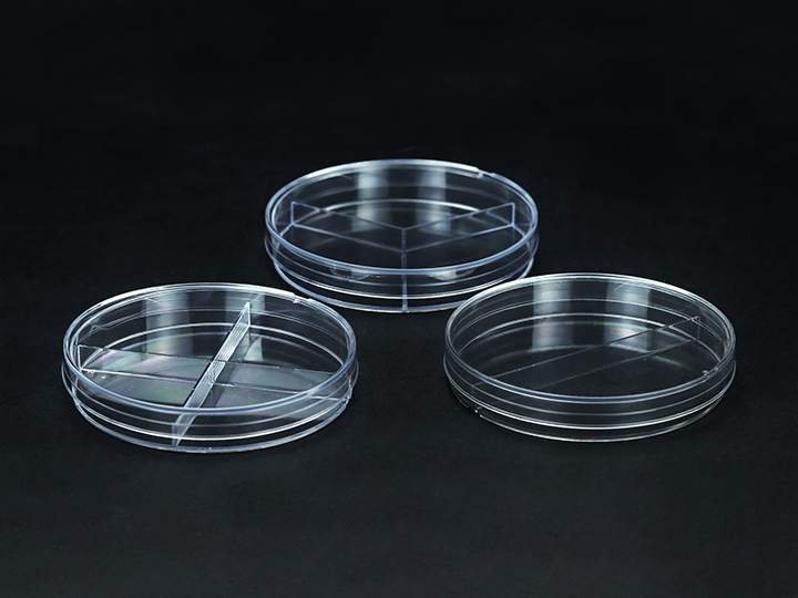 分格細(xì)菌培養(yǎng)皿是指在細(xì)菌培養(yǎng)皿的基礎(chǔ)上增加分隔設(shè)計(jì),可在隔間添加不同培養(yǎng)基或接種不同菌落,便于觀察和比較微生物的生長特性。潔特生物提供多種分格細(xì)菌培養(yǎng)皿可選,在十萬級潔凈車間生產(chǎn),采用一體注塑成型,結(jié)構(gòu)牢固、獨(dú)立性好,有效避免交叉污染,可滿足科研人員對微生物分區(qū)培養(yǎng)和觀察等需求。