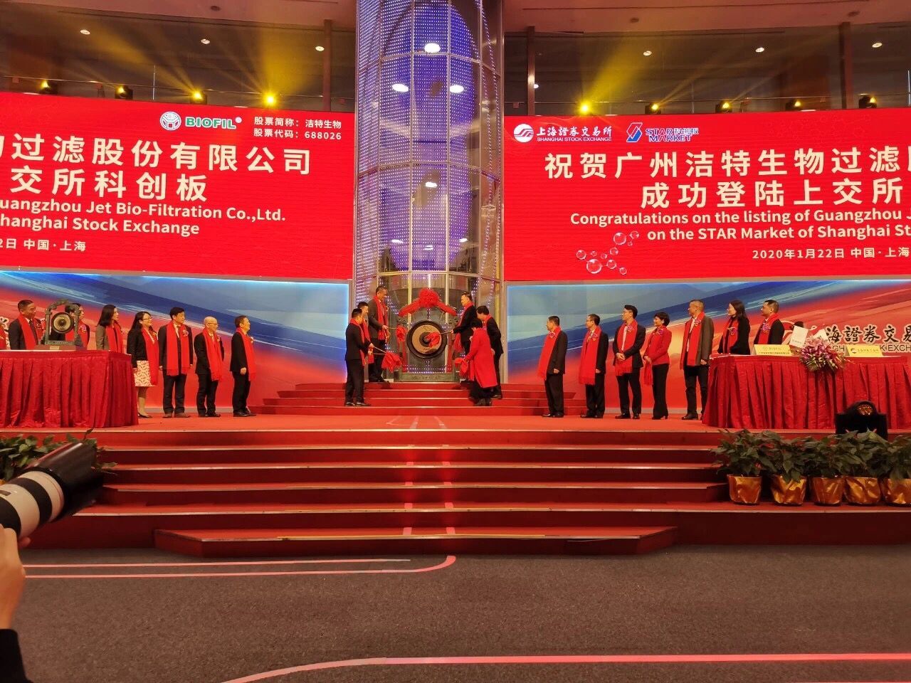 1月22日,廣州潔特生物過(guò)濾股份有限公司在上海證券交易所科創(chuàng)板成功上市,證券簡(jiǎn)稱為“潔特生物”,證券代碼為“688026”,成為廣東省2020年首家科創(chuàng)板上市企業(yè),也是黃埔區(qū)廣州開發(fā)區(qū)第二家科創(chuàng)板上市企業(yè)。廣州市政府副秘書長(zhǎng)刁愛林、黃埔區(qū)副區(qū)長(zhǎng)葉偉雄、廣州市科技局副巡視員石鵬飛、廣州市金融監(jiān)管局副巡視員李貴遠(yuǎn)等領(lǐng)導(dǎo)和嘉賓參加了企業(yè)上市儀式。