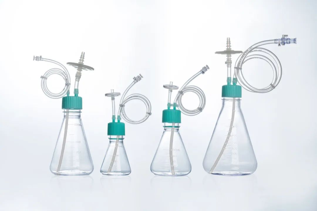 在生物制品的工業(yè)生產(chǎn)中,降低液體轉(zhuǎn)移、取樣等過(guò)程潛在的污染風(fēng)險(xiǎn)至關(guān)重要,三角培養(yǎng)搖瓶搭配無(wú)菌轉(zhuǎn)移蓋及管路系統(tǒng),即可避免開(kāi)放式操作帶來(lái)的污染問(wèn)題。