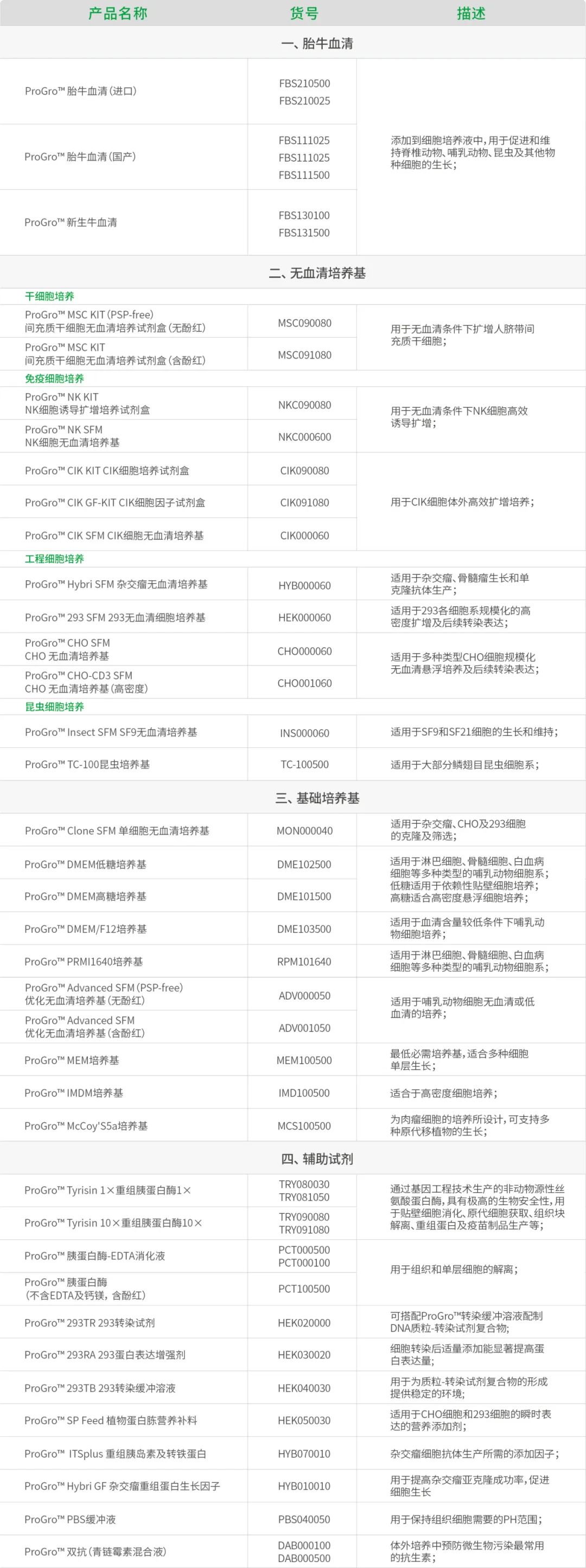 涵蓋了無血清培養(yǎng)基、基礎(chǔ)培養(yǎng)基、胎牛血清以及各類輔助試劑等四大系列。
