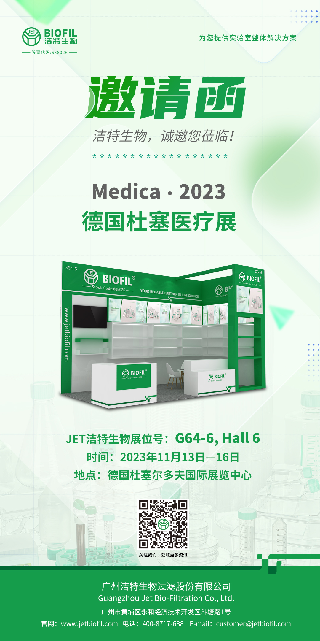 JET潔特生物展位號:G64-6, Hall 6