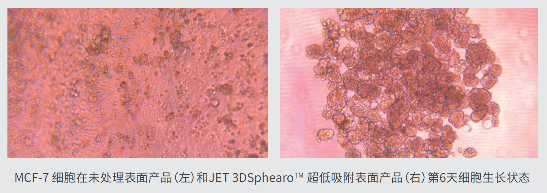 圖1:將MCF-7 細(xì)胞按5000個(gè)/孔的接種密度分別接種在不同產(chǎn)品的U型底96 孔培養(yǎng)板中,定期觀察細(xì)胞的生長狀態(tài)。